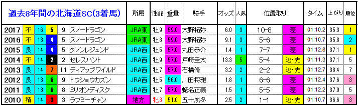 | 2017 | JRA西 | JRA西 | JRA東 |