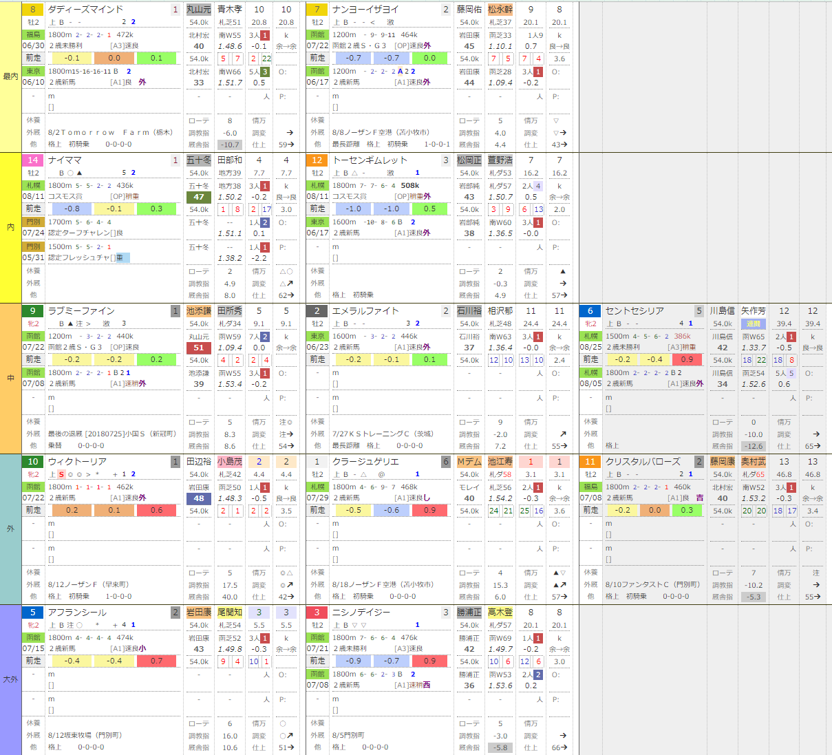 それでは今週の追い切り診断の始めよう。まずは土曜の札幌2歳Sから。