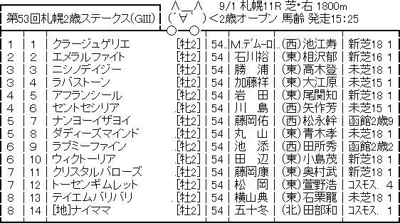 今時期の2歳重賞は好みではないので…札幌2歳S予想は回避させて頂きますがご容赦下さい。