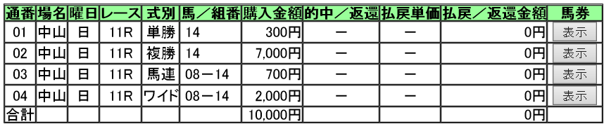 G1「◎14ラッキーB→△8ファインN/買い目×10000円→0円」/他「◎5人×,5人×,8人×」/エキ「買い目〇7500円→26000円)」