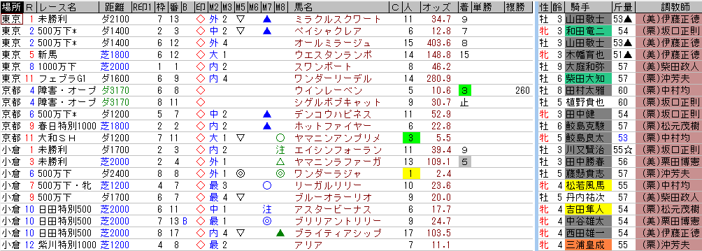 位置取りシート的にも1番手に入っている馬もいるし、後半印▲もいる。