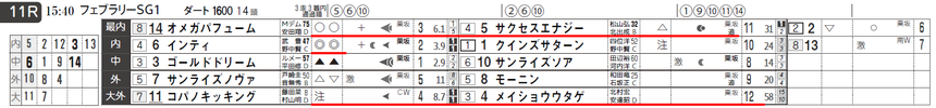 他の四隅が4・メイショウウタゲ、5・サクセスエナジー、11・コパノキッキング。