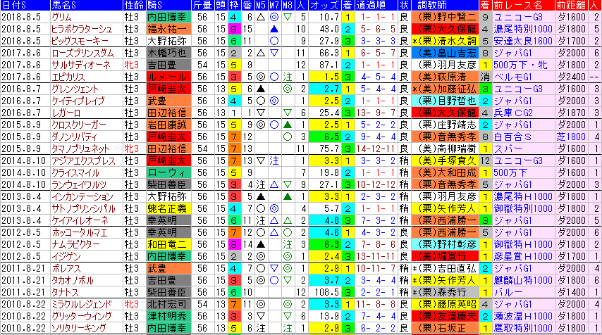 | メスキータ | 森裕太 | 56 | 山内研二 | ジャパンダートダー ダ2000 | 12 | 36 | 0. | -9.9 | / | |||