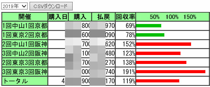 ※[参考値]個人PAT収支:回収率106%(※他に現地購入日や競馬予想TV購入分も多々ありますので、決してこれが全てではありません=正確な収支ではありませんが、上記の予想回収率ともそこまで齟齬は無い収支なので参考までに公開致しました。)