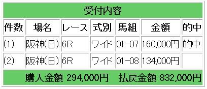 結果はアドマイヤビルゴ、アメリカンシードのワイド1点的中で2.1倍的中となりました。