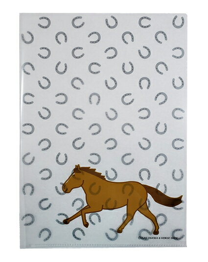クリアファイルA4【蹄鉄と馬 HORSE&HORSESHOE】シンプルな馬と蹄鉄のクリアファイル 1枚入りおがわじゅりイラスト |